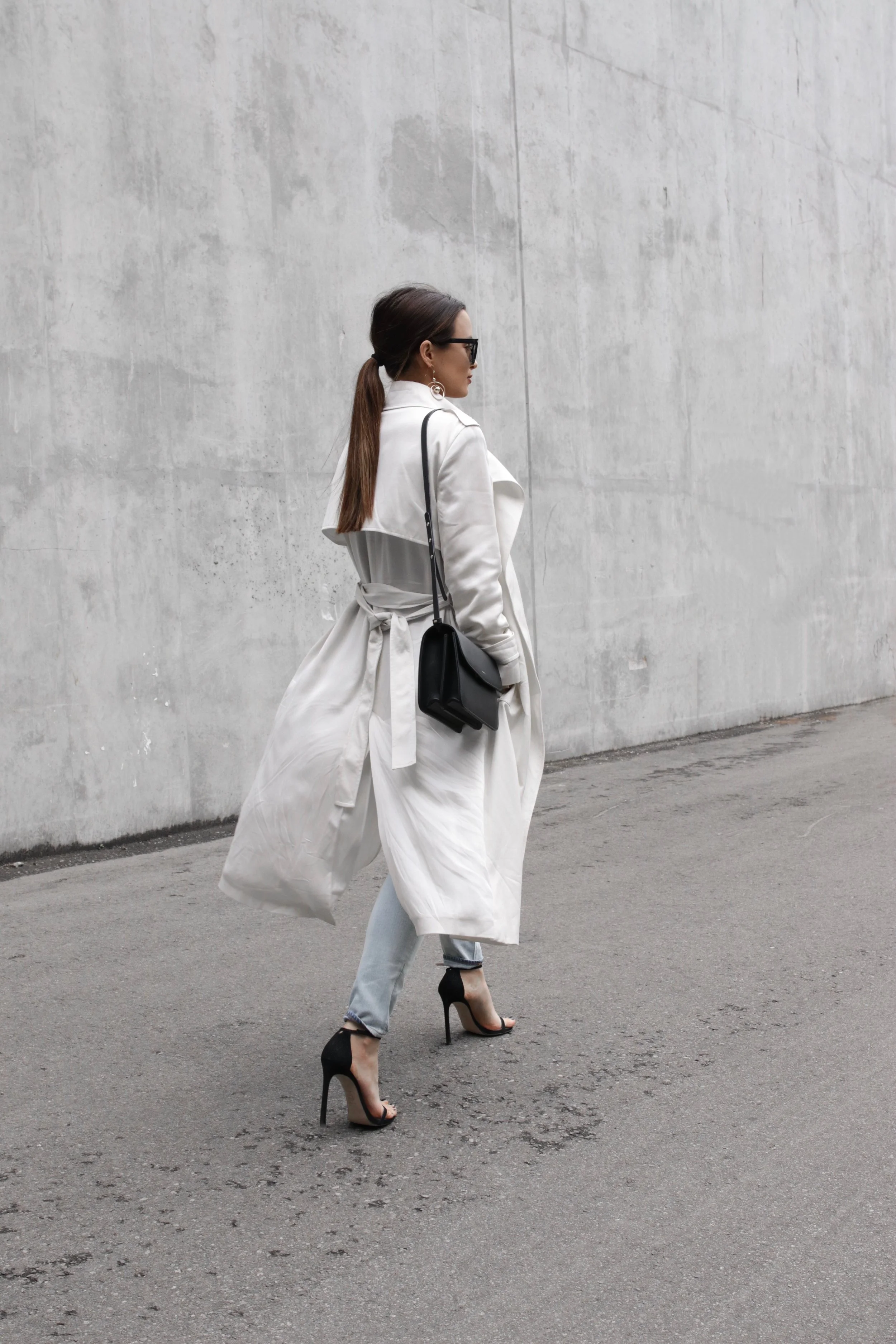Wearing: Trench | Saint Laurent Sunglasses x Holly Eyewear | Denim | Shoes | Bag